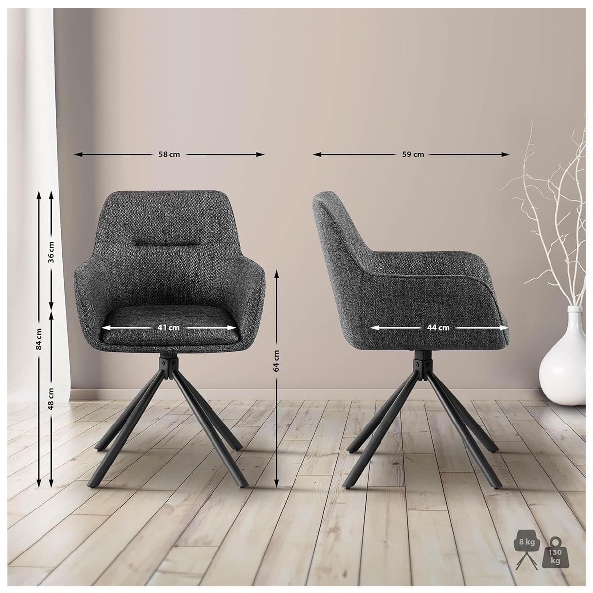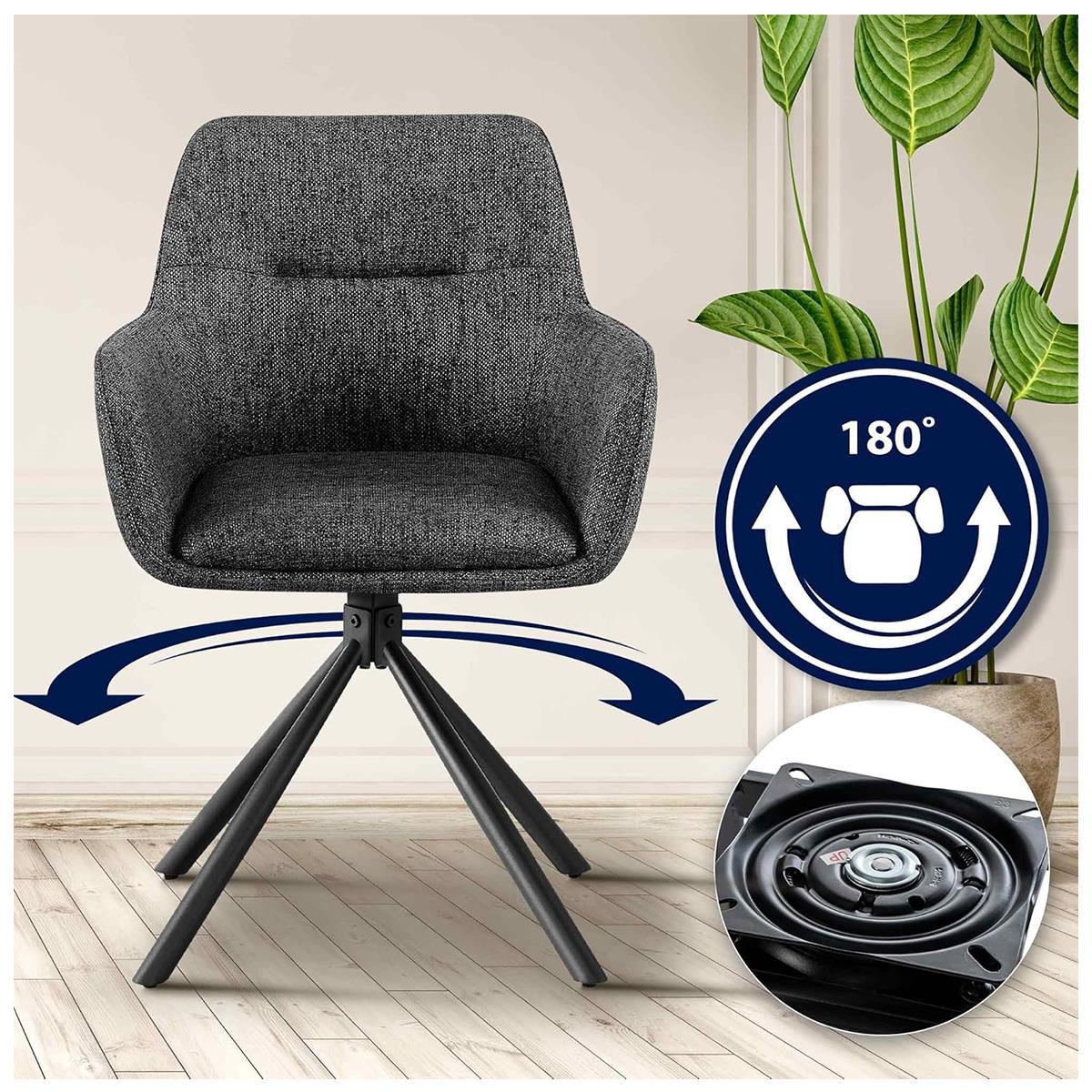 Zestaw 2 szt. Krzesło do Poczekalni COREY, Obrotowe, Wygodne Wyściełane Siedzisko, Tkanina kolor Ciemnoszary