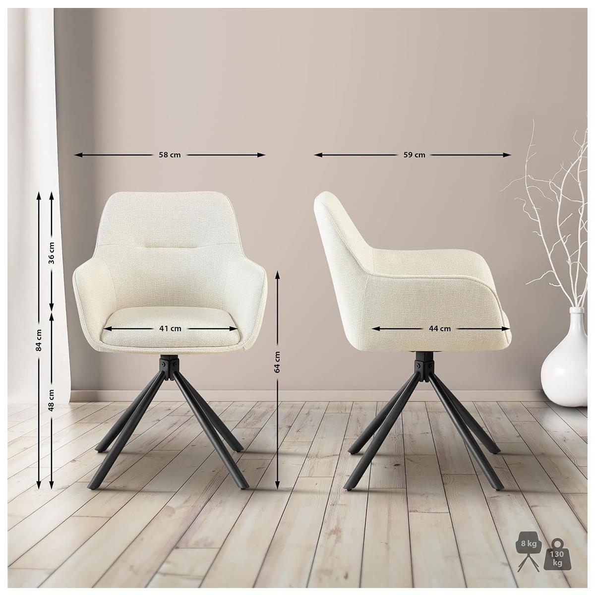 Zestaw 2 szt. Krzesło do Poczekalni COREY, Obrotowe, Wygodne Wyściełane Siedzisko, Tkanina kolor Kremowy