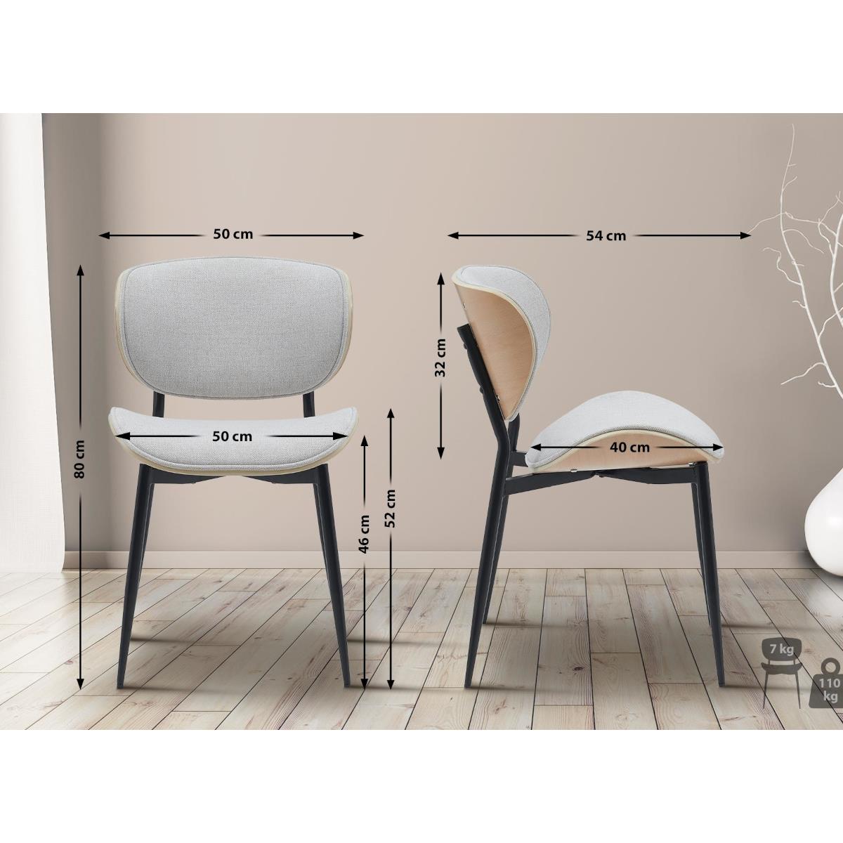 Nogi i stelaż zostały wykonane z metalu w kolorze czarnym. Jak widać na zdjęciach produktowych, gięte plecki i siedzisko pięknie dopełniają estetyki tego modelu. Materiały wyróżnia doskonała jakość, dzięki czemu krzesła pięknie się prezentują, a ponadto są solidne i stabilne.