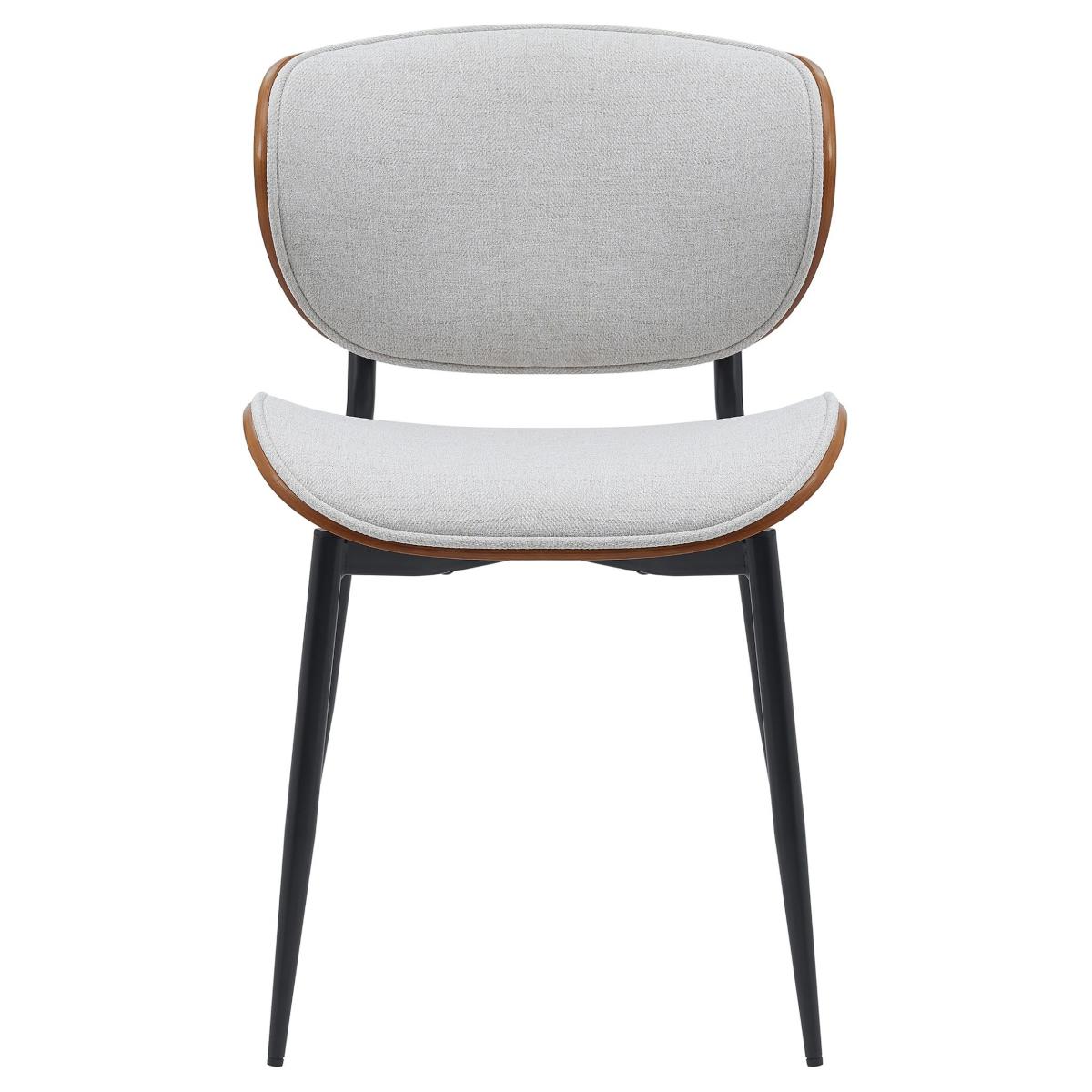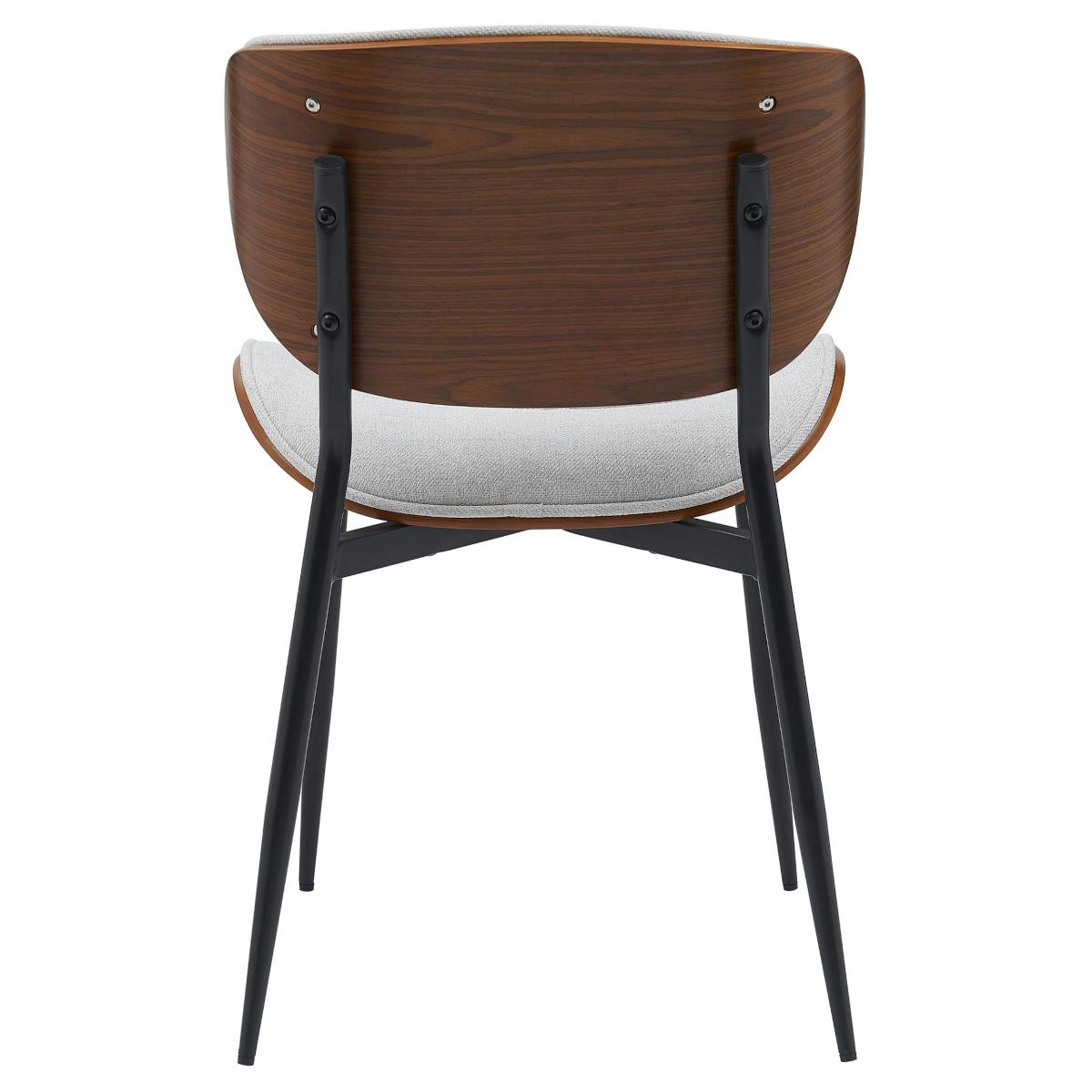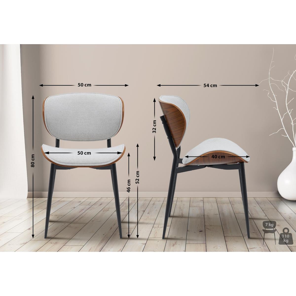 Nogi i stelaż zostały wykonane z metalu w kolorze czarnym. Jak widać na zdjęciach produktowych, gięte plecki i siedzisko pięknie dopełniają estetyki tego modelu. Materiały wyróżnia doskonała jakość, dzięki czemu krzesła pięknie się prezentują, a ponadto są solidne i stabilne.