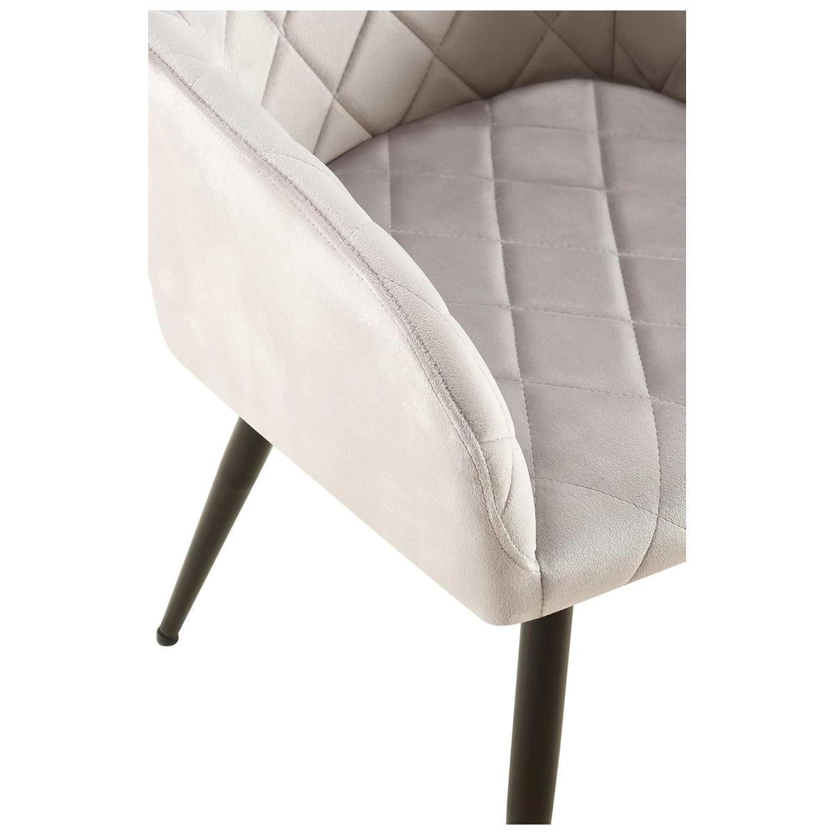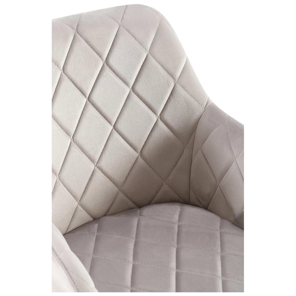 Tapicerka wykonana została z miękkiej, wytrzymałej i łatwej w czyszczeniu tkaniny aksamitnej. Obicie dostępne w różnych kolorach, aby z łatwością dopasować krzesła do istniejącego wystruju wnętrza lub osobistych gustów. Warto zwrócić uwagę na pikowanie tapicerki w kształt rombów, które nadaje temu modelowi szczególnego uroku.