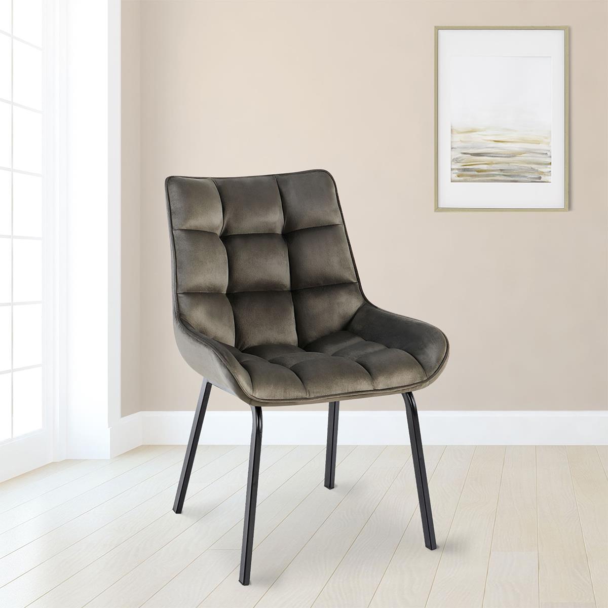 Siedzisko jest pokryte miękkim aksamitem, odpornym i łatwym do czyszczenia. Nogi są wykonane z metalu z matowym czarnym wykończeniem. Wszystkie materiały użyte do produkcji fotela są najwyższej jakości i nadają się do intensywnego, codziennego użytkowania.