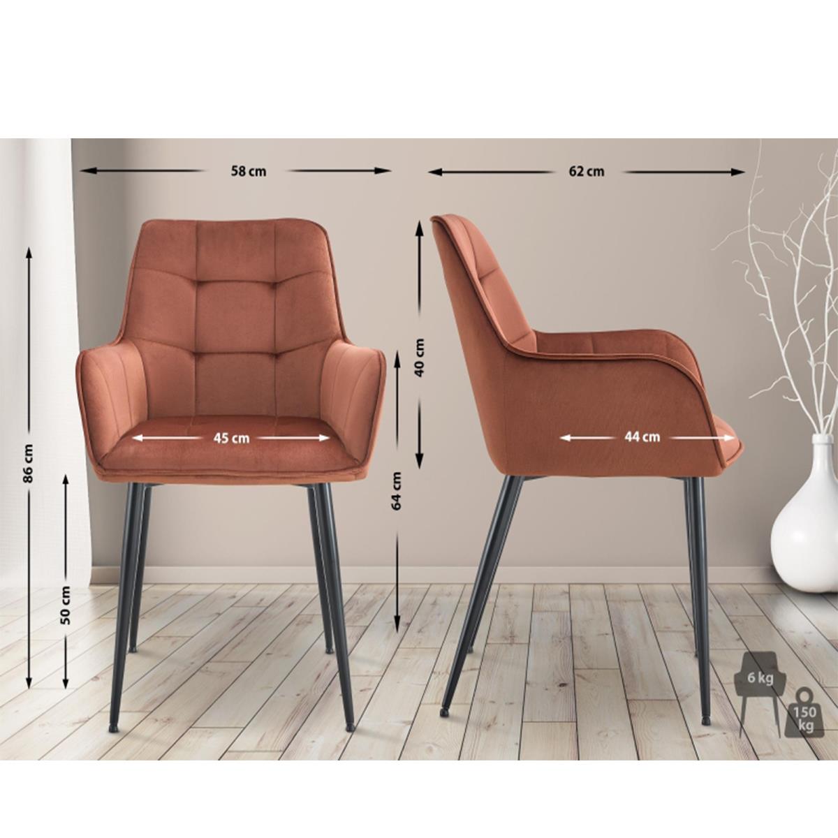 Krzesło zostało wykonane z wysokiej jakości materiałów. Tapicerka z aksamitnej tkaniny jest miękka i przyjemna w dotyku, a przy tym trwała i wygodna w użytkowaniu. Z drugiej strony metalowa konstrukcja zapewnia dużą stabilność i wytrzymałość krzesła. Model ten jest dostępny w szerokiej gamie kolorów, dzięki czemu możesz wybrać ten, który najlepiej pasuje do Twojego gustu lub do wystroju pomieszczenia.