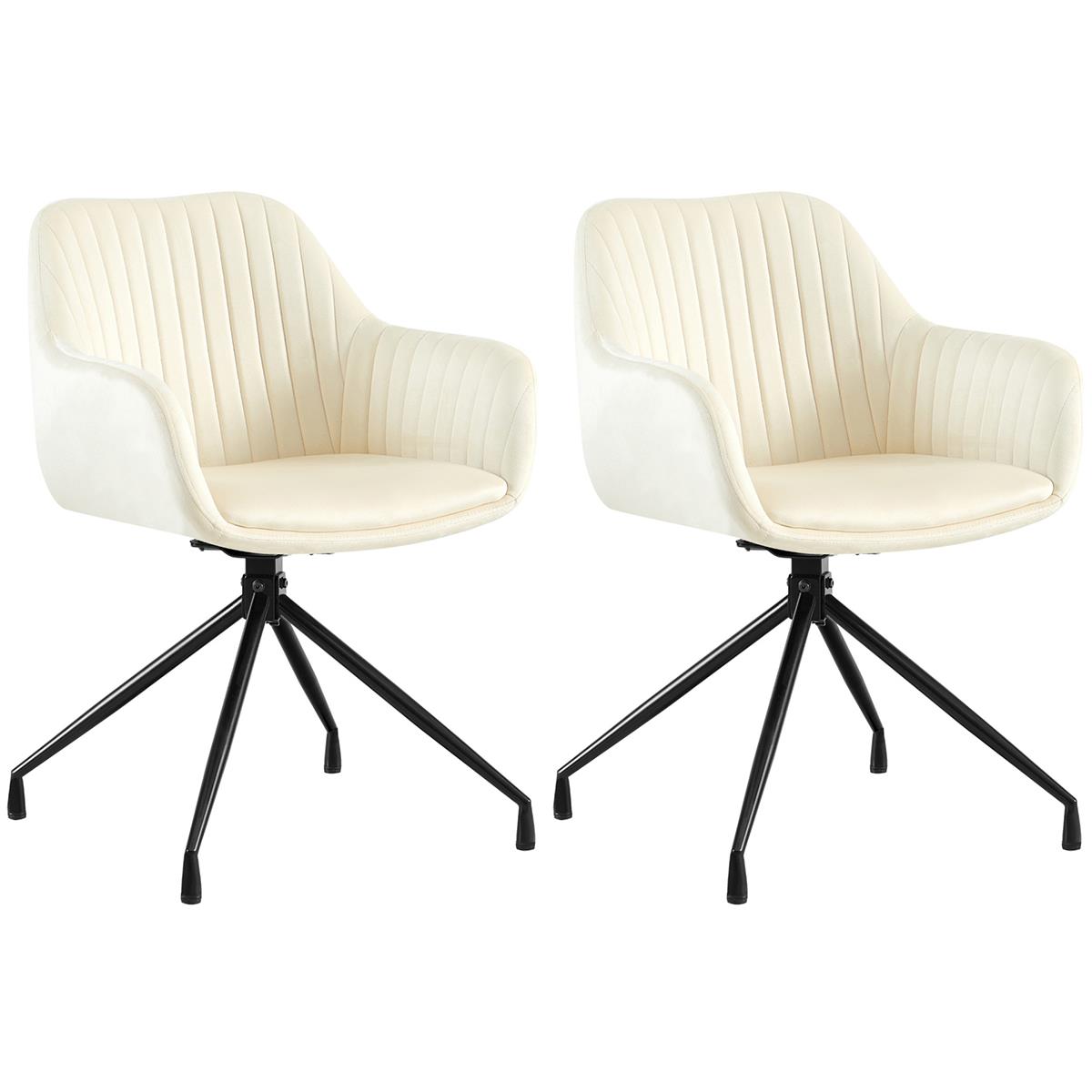 Zestaw 2 szt. Krzesło Wizytowe TANNER, Obrotowe Wyściełane Siedzisko, Metalowe Nogi, Aksamit kolor Kremowy