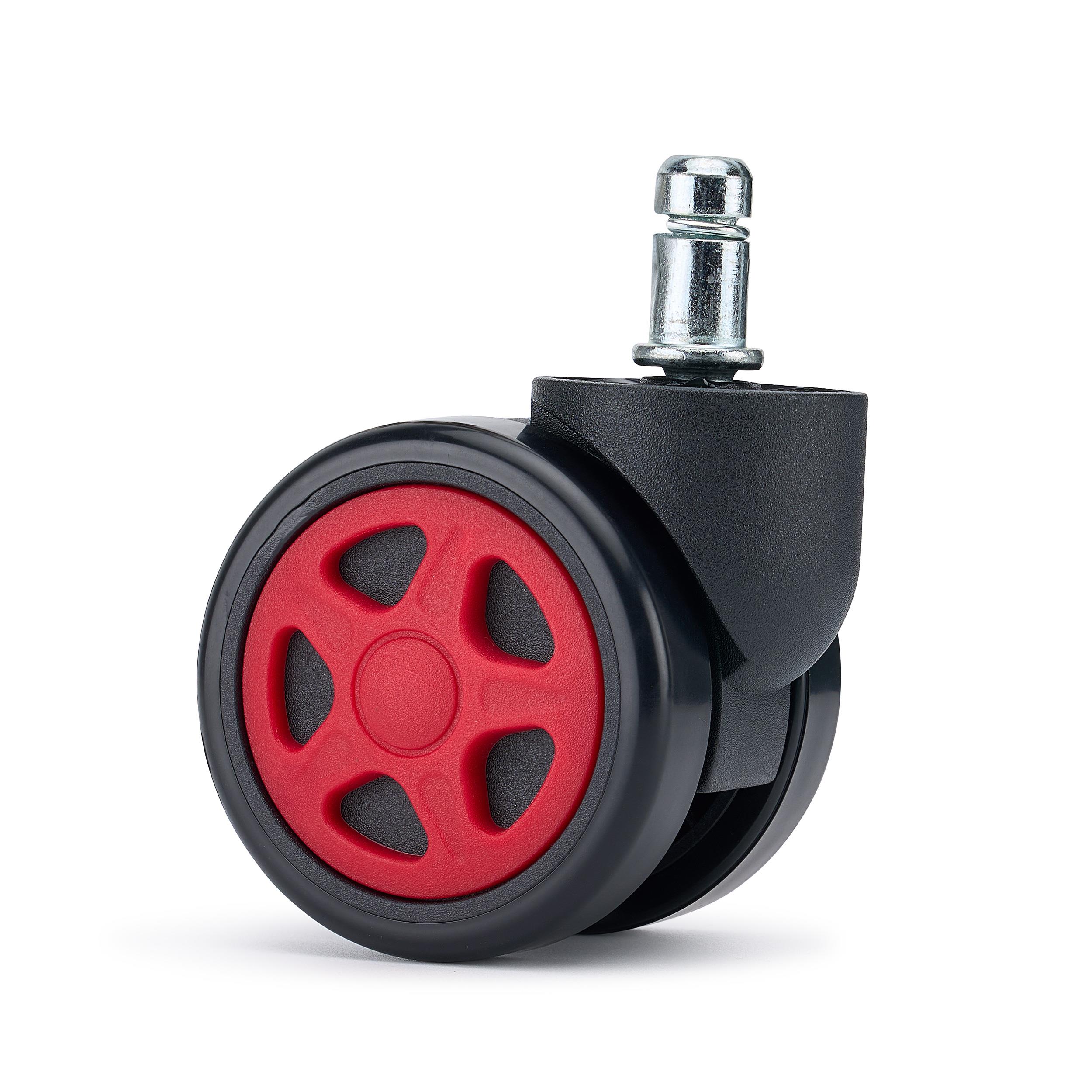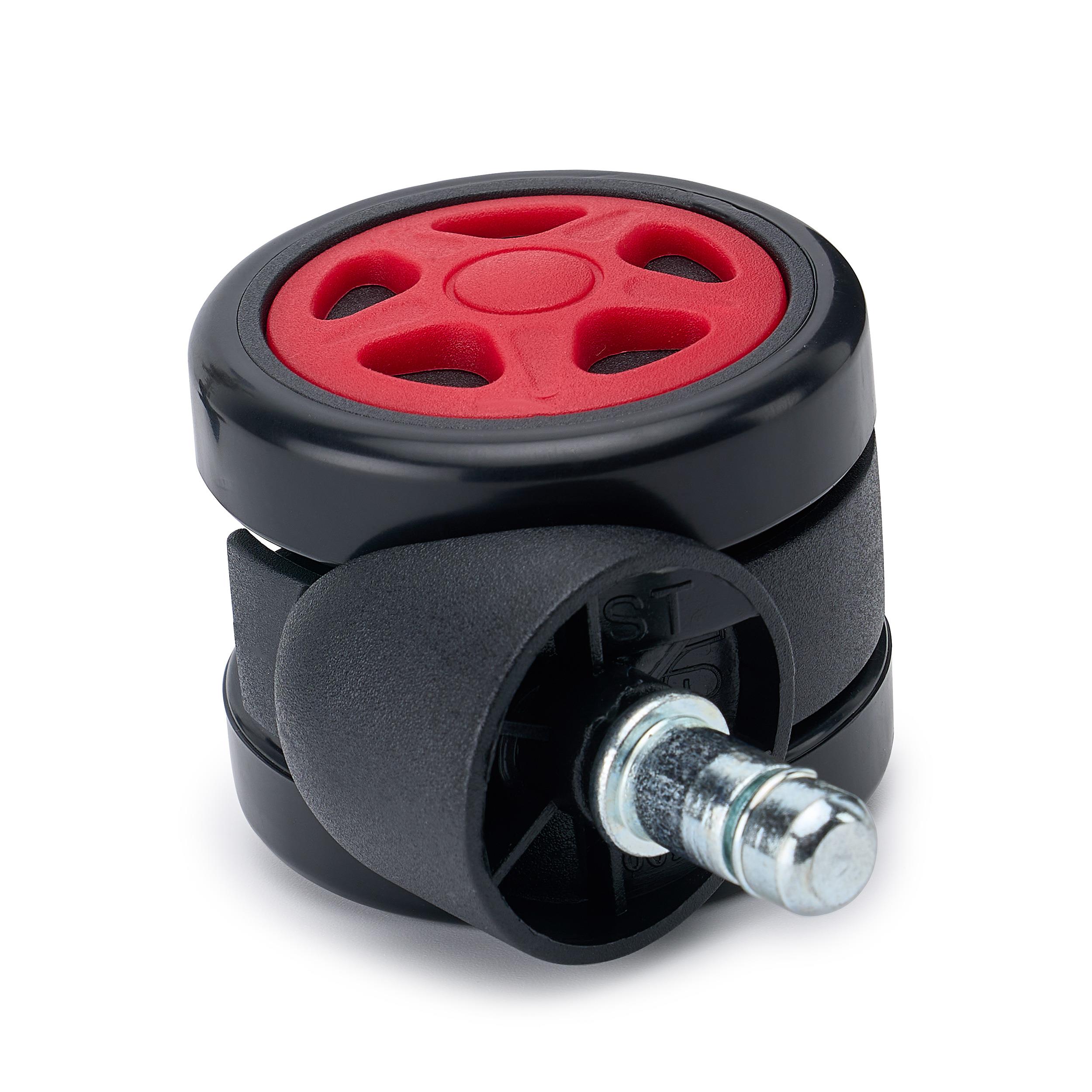 Zestaw 5 szt. Kółka Gamingowe SPEED do Parkietów 11 mm / 50 mm, Kontrastowe Kolory, Czarno-Czerwone