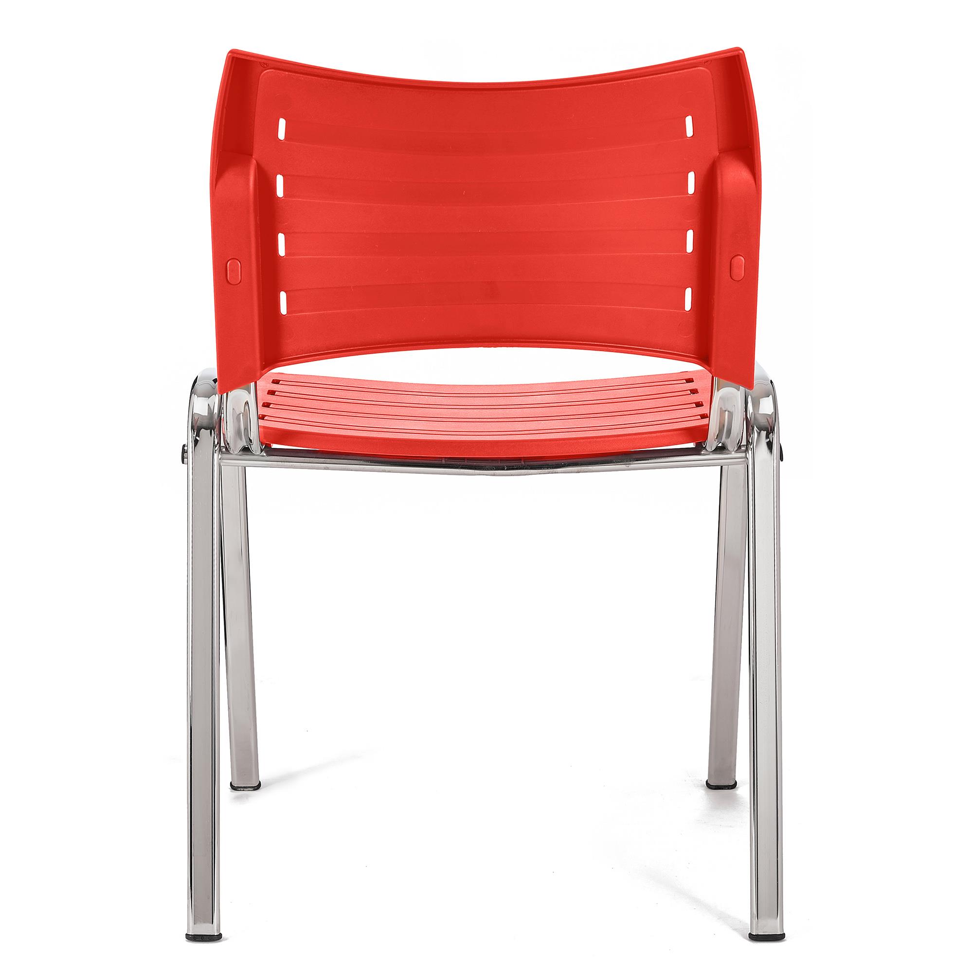 Zestaw 5 szt. Krzesła Konferencyjne ELVA, Sztaplowane i Bardzo Praktyczne, Wysoka Jakość, Czerwone i Chromowane Nogi