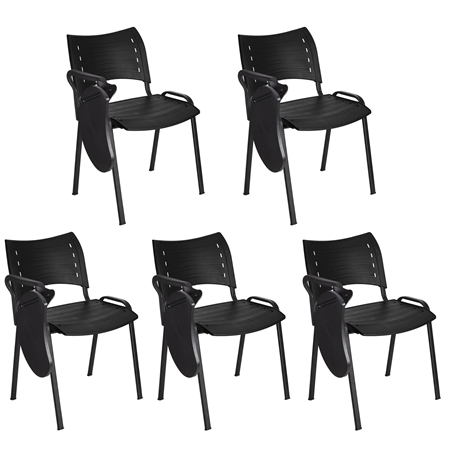 Zestaw 5 szt. Krzesła Konferencyjne ELVA Z PULPITEM, Sztaplowane i Praktyczne, Czarne Nogi, Kolor Czarny