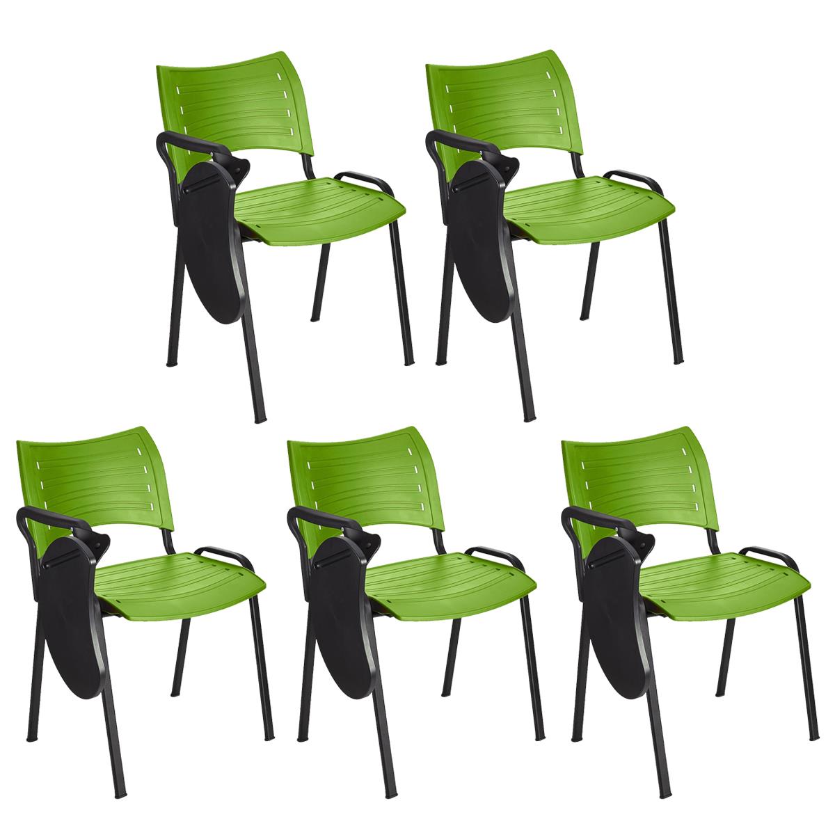 Zestaw 5 szt. Krzesła Konferencyjne ELVA Z PULPITEM, Sztaplowane i Praktyczne, Czarne Nogi, Kolor Zielony
