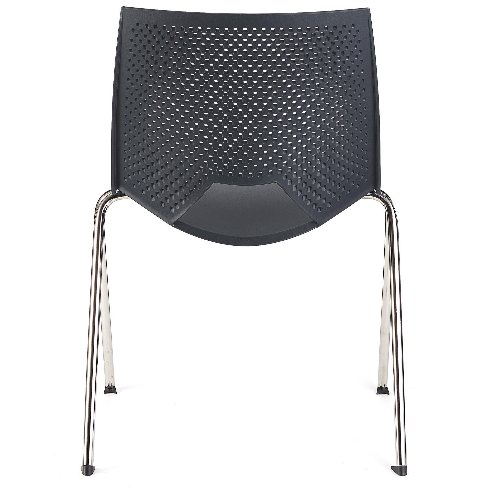 Do produkcji krzesła użyto materiały wysokiej jakościSiedzisko i oparcie wykonane zostały z wytrzymałego tworzywa sztucznego, a ich kształt zapewnia wysoki komfort użytkowania. Dodatkowo warto zaznaczyć, że oparcie jest perforowane, co umożliwia wentylację. Konstrukcja krzesła opiera się na ramie ze stalowych rurek z czterema nogami. Idealnie sprawdzi się jako wygodne i wysokiej jakości siedzisko dla gości i klientów.